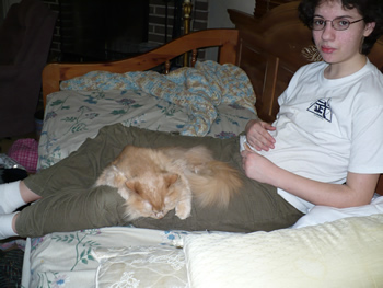 Ibland handlar det om husdjur, som på bilden nedan. He likes to drape himself over my leg.